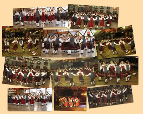 Configuração mais freqüente de danças folclóricas e possue um número variável de pares. Apresentam uma peculiaridade, o conjunto e a harmonia se evidenciam destacando a qualidade do grupo na precisão dos movimentos. Também são as preferidas como dança de integração onde a troca de pares é freqüente. O Heimatland realiza danças de integração em suas apresentações e o publico é convidado a se integrar e dançar com o grupo. |