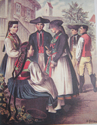 Abaixo alguns registros do traje de Betzingen em fotos, selos, quadros, pinturas, gravuras em porcelanas e vidrarias